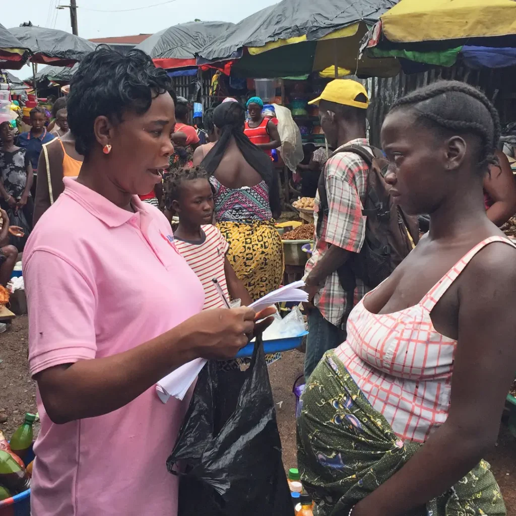 Ami walks through markets searching for pregnant women. She encourages them to visit the clinic so their pregnancies can be checked and they can give birth safely. By bringing care to the streets, she helps women who might otherwise be missed.